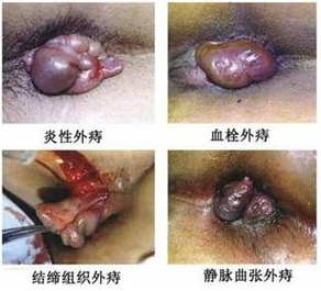 ② 血栓性外痔:肛门静脉丛破裂,血液漏出血管外,形成血栓在皮下隆起。特点为起病突然,局部肿胀、疼痛剧烈。