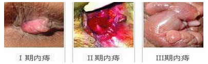后期(Ⅲ期):痔核更大,质地较硬,表面微带灰白色,便时痔核脱出肛门外,甚至行走、咳嗽、喷嚏或站立时也会脱出,不能自行回纳,须用手推回,或平卧、热敷后方能回纳,便血不多或不再出血。