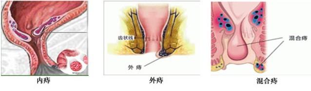 ③ 疼痛:单纯性内痔无疼痛,少数有坠胀感,当内痔或混合痔脱出嵌顿,出现水肿、感染、坏死时,则有不同程度的疼痛。